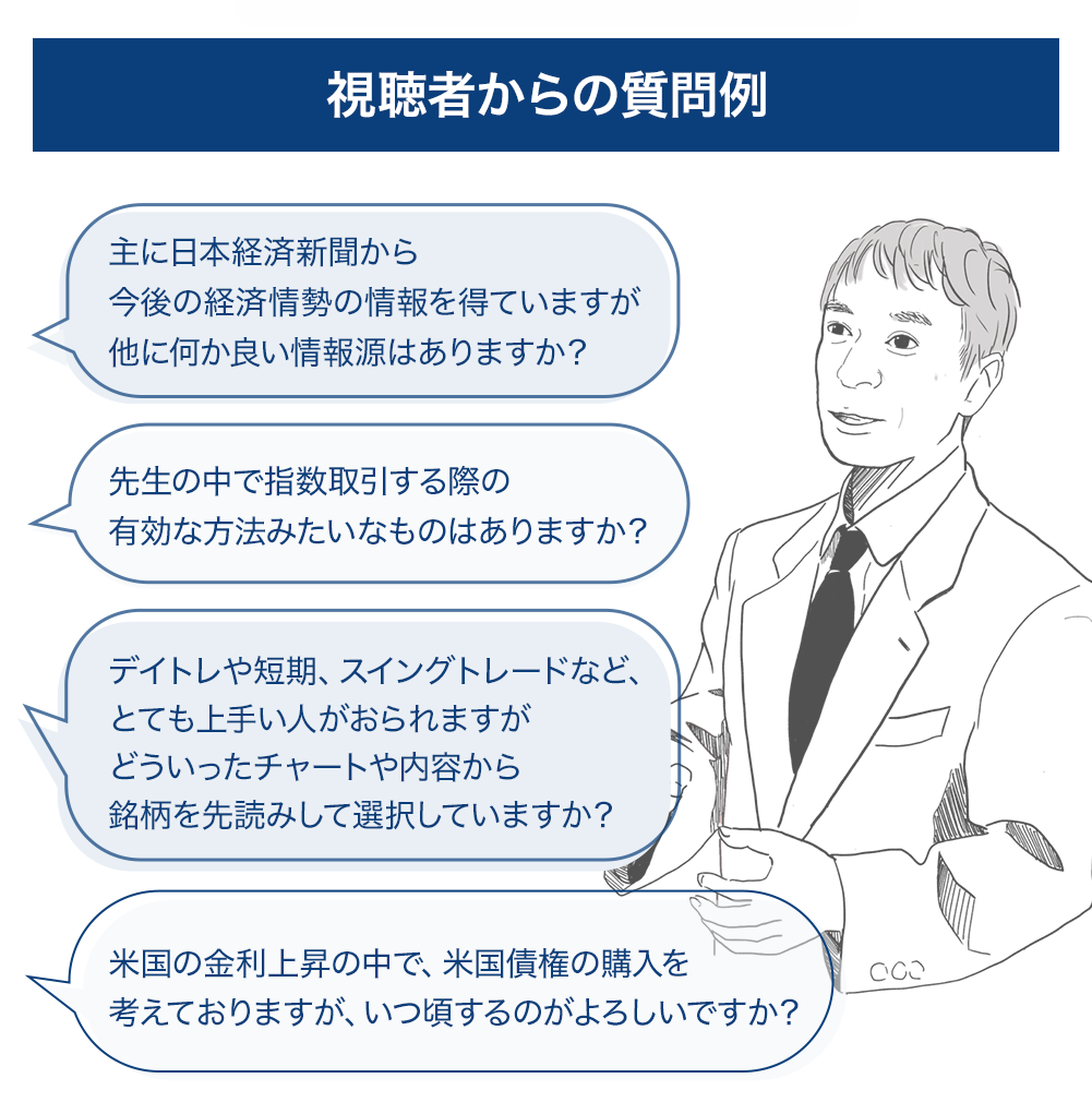 本サービスはすでに株を自分で買ったことがある方、 もしくは、それ以外の投資の参考のために相場全体の状況を知りたいという方に向けた情報配信サービスのため、株の注文の出し方や証券会社のツールの使い方などの指導は含まれておりません。ご自身で証券会社のHP等で調べていただく必要があります。 ただし、「投資のお悩み相談室」のコーナーでは「この用語の意味を教えてほしい」「この指標はどういう意味ですか」などの質問には丁寧にお答えしますので、初心者の方も安心してご参加ください。